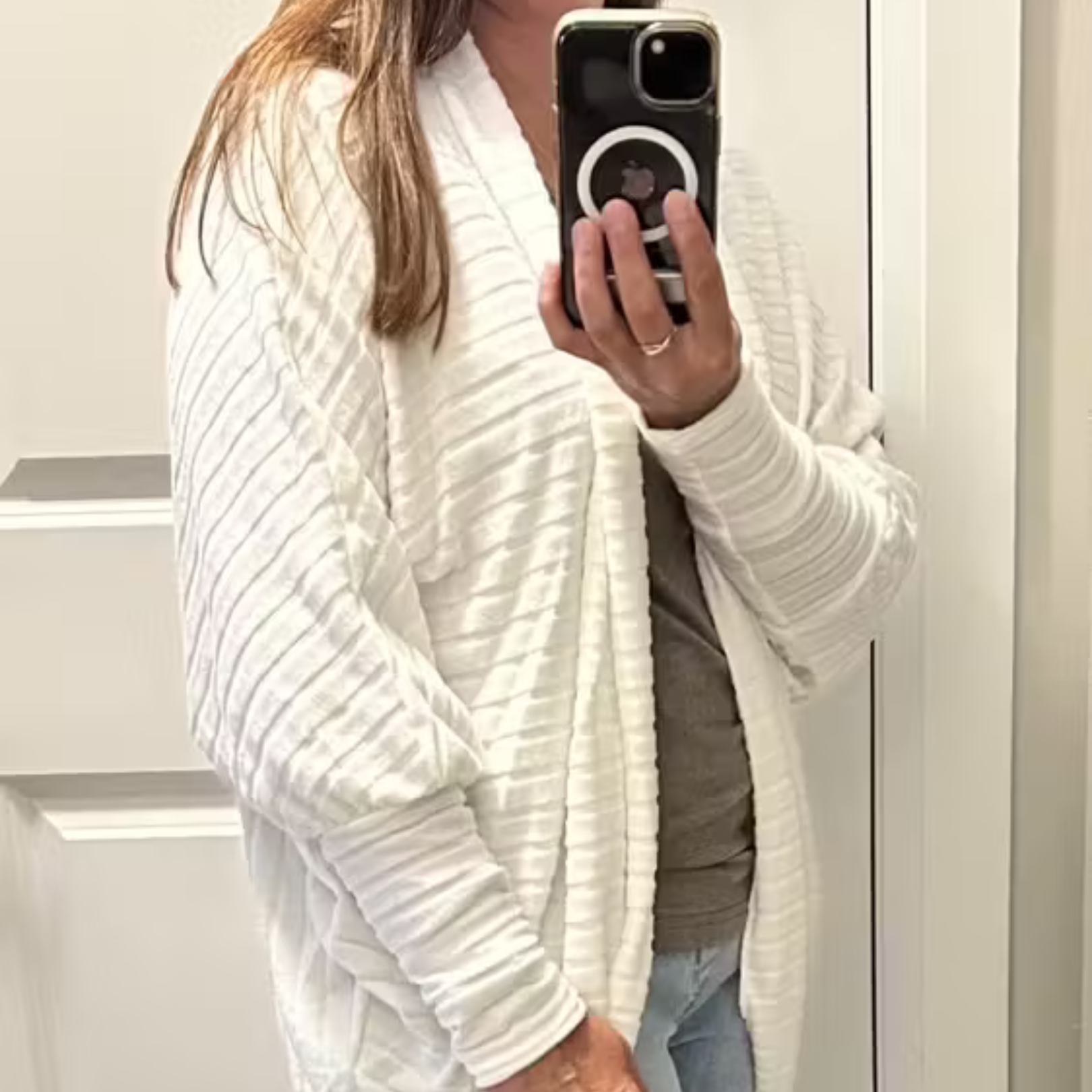 I absolutely love my new cardigan! The quality is beautiful, soft but structured, and it keeps me warm without feeling bulky. It’s become my go-to for morning walks by the lake.